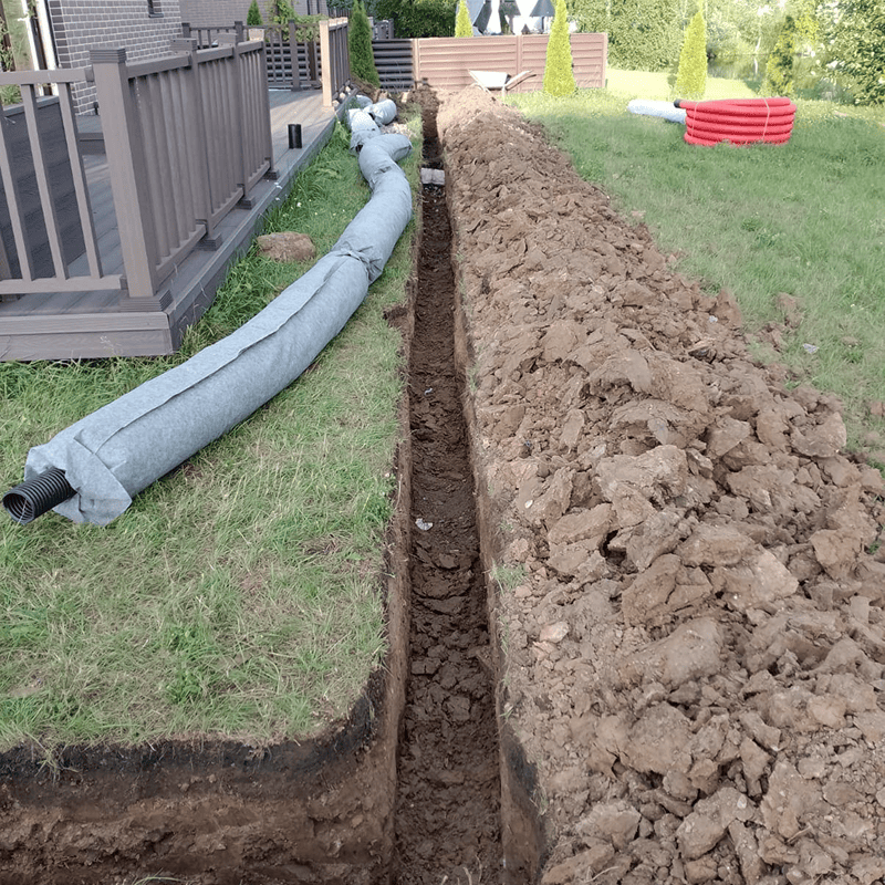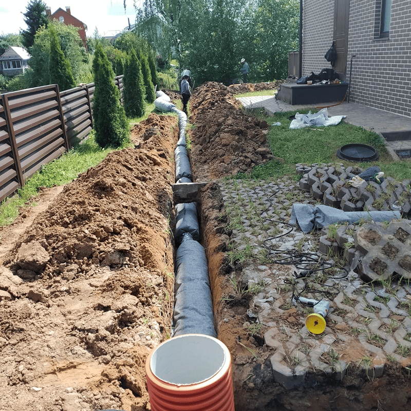 В среднем монтаж системы под ключ занимает 1–2 дня. Срок зависит от площади участка, сложности рельефа и выбранного типа дренажа.
