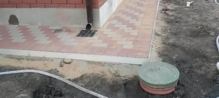 Вода собирается в приёмный (сборный) колодец, откуда отводится за пределы участка — в канаву, кювет, ливнёвку или по рельефу. Иногда при глубоком залегании песчаных слоёв вода уходит в них естественным образом.